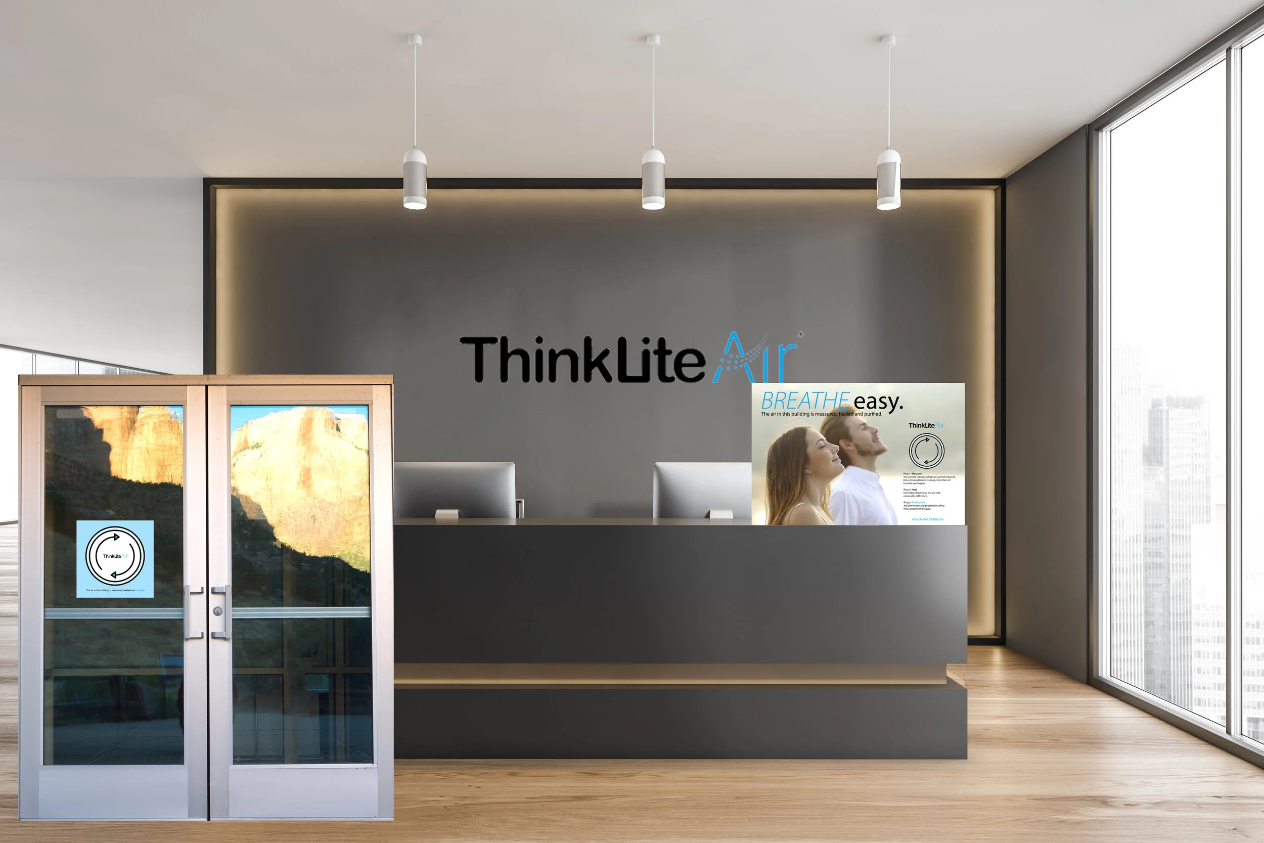 Use of visual branding at point of building entry with the use of eye catching door decals.